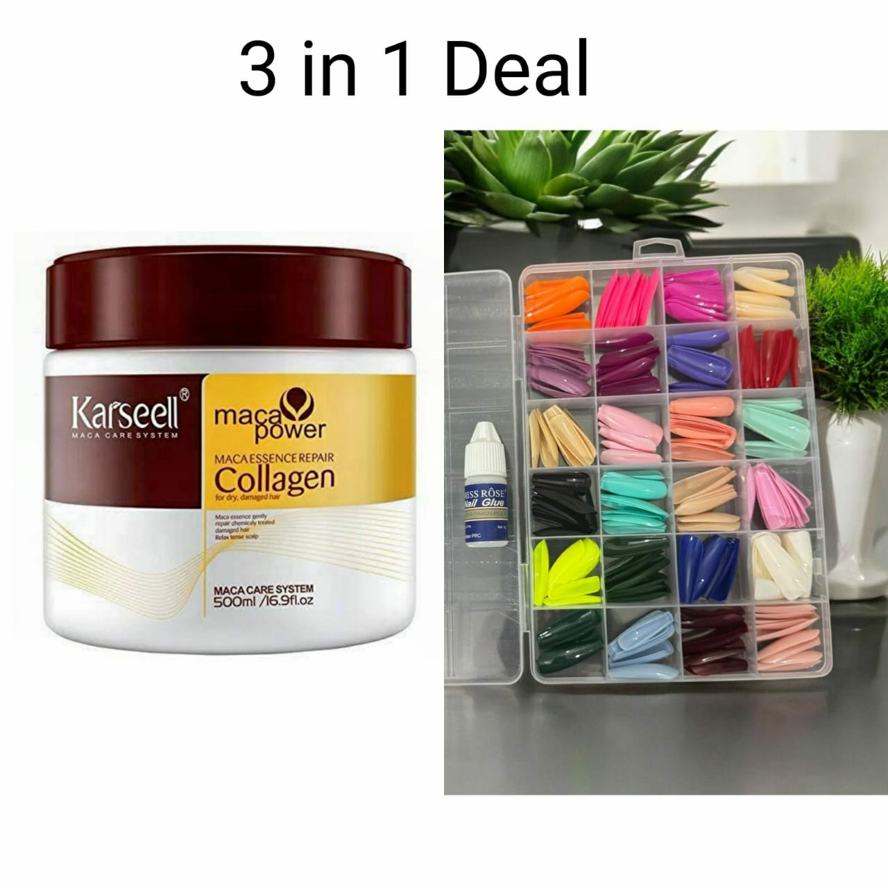 3 in 1 Deal Karseell Hair Mask Collagen Treatment Cream + Reusable 576 Pcs Fake Nails + Fake Nails Glue | Makeup And Hair Care Deal